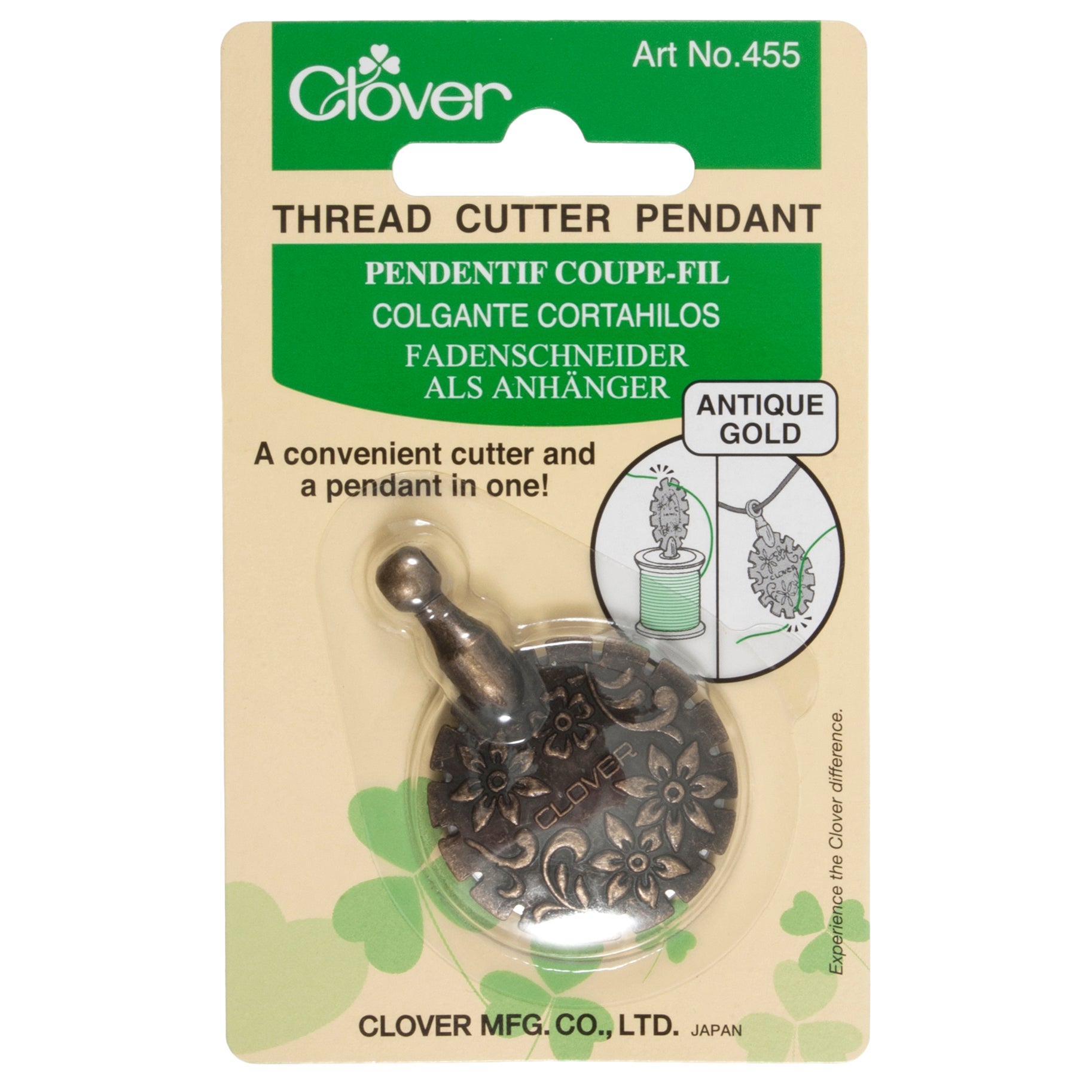 - It can be set atop a thread reel or used as a pendant.