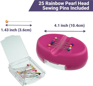 The Quilted Bear Magnetic Pin Dish with 25 Sewing Pins (Pink)