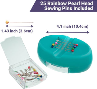The Quilted Bear Magnetic Pin Dish with 25 Sewing Pins (Turquoise)