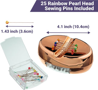 The Quilted Bear Magnetic Pin Dish with 25 Sewing Pins (Rose gold)