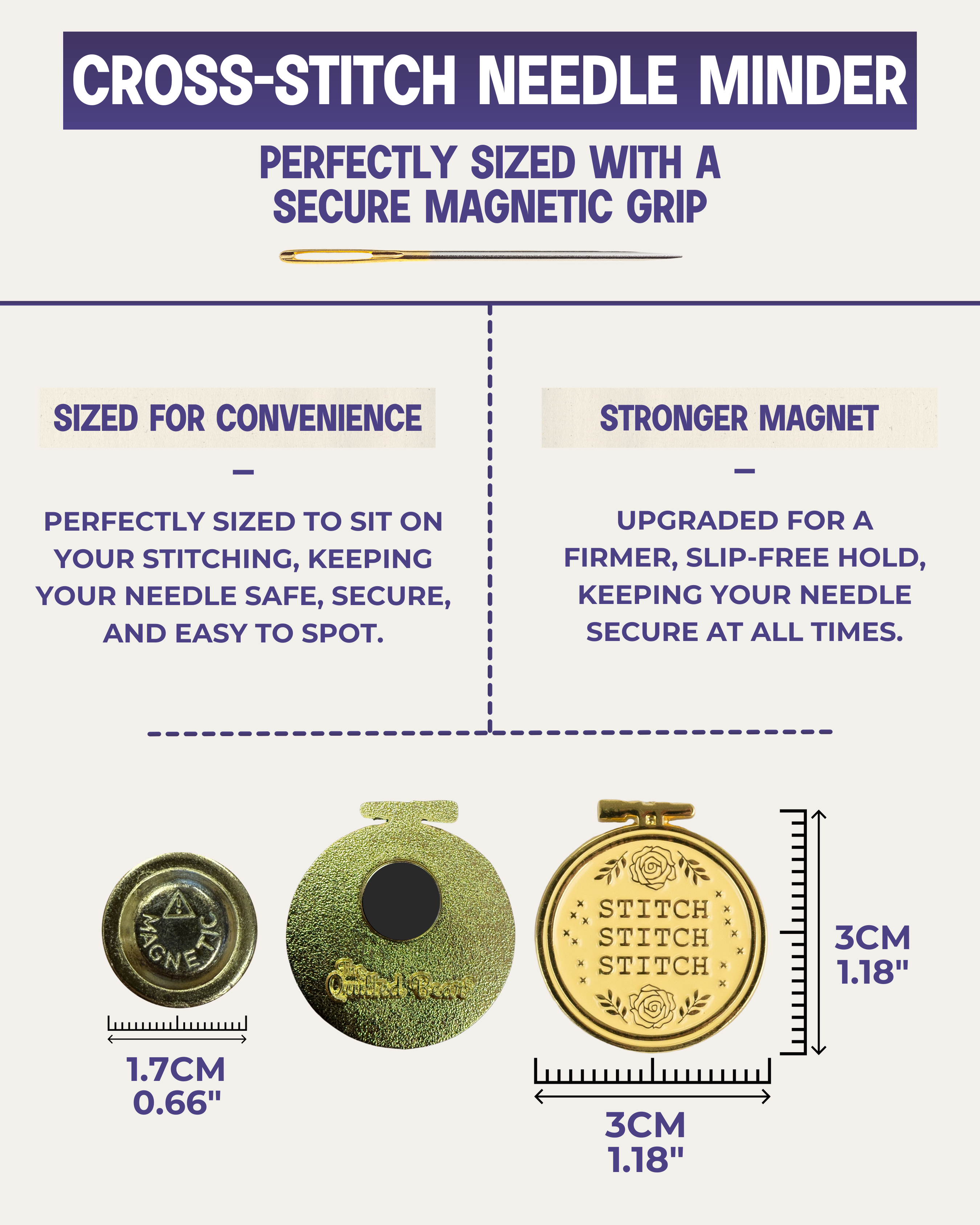 - Featuring our newly redesigned larger magnet with over twice the strength of our previous generation - whether changing thread colours or simply taking a break - this needle minder stays exactly where you placed it.