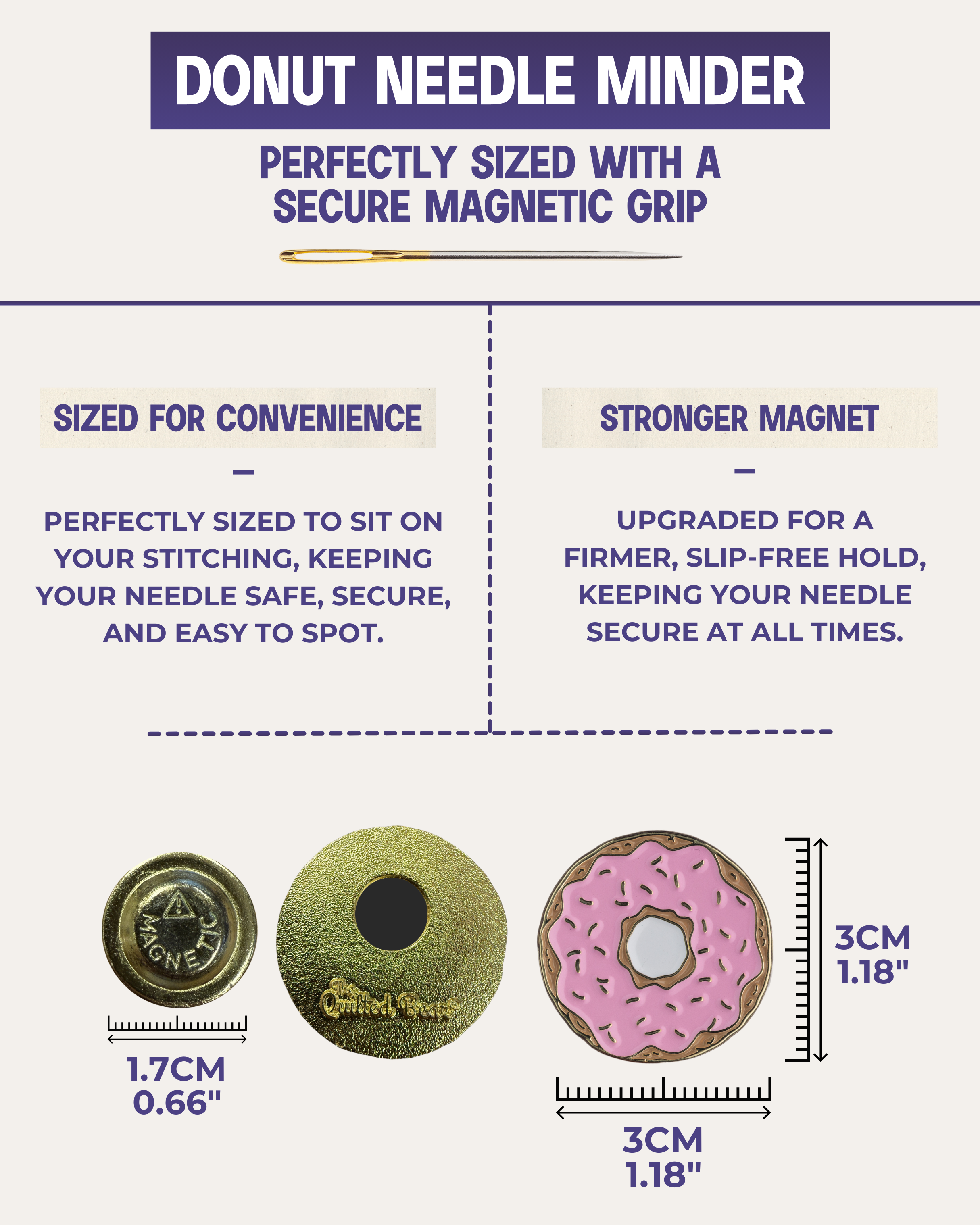 - Featuring our newly redesigned larger magnet with over twice the strength of our previous generation - whether changing thread colours or simply taking a break - this needle minder stays exactly where you placed it.