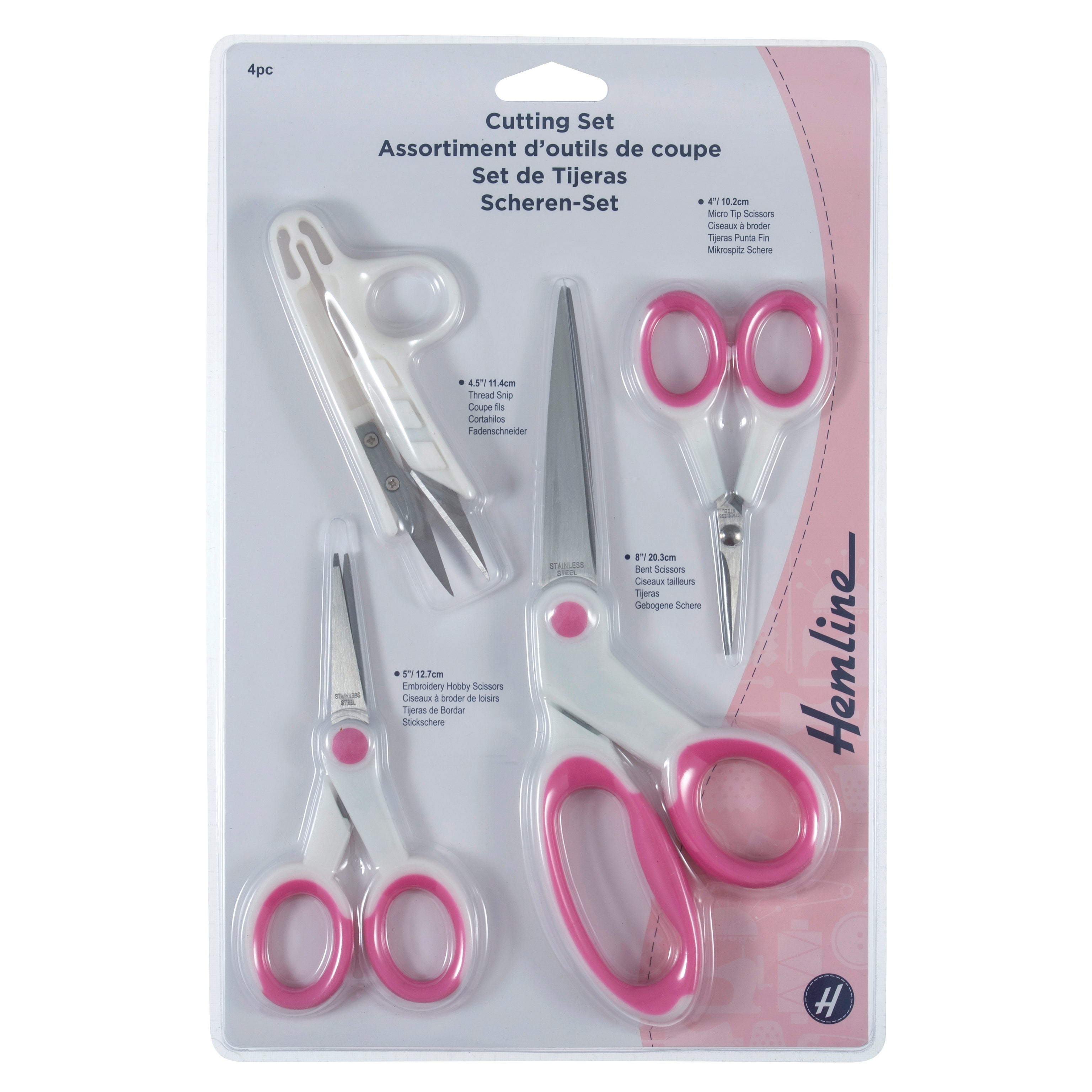 Hemline 4 Piece Cutting Set - Embroidery, Thread Snips, Bent Scissors and Micro Tip