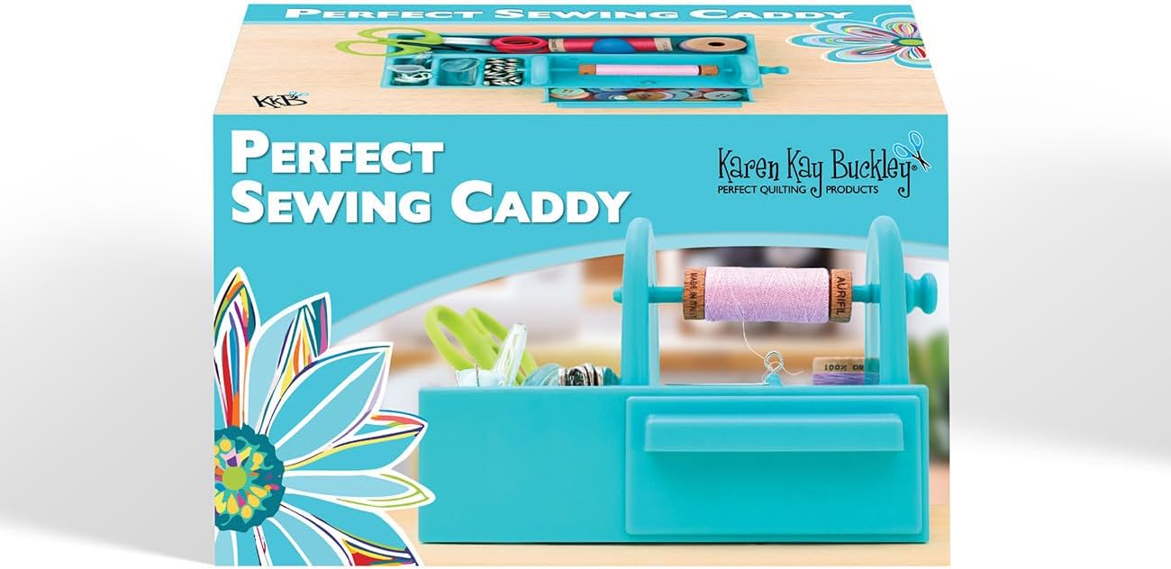 The Karen Kay Buckley Perfect Sewing Caddy, designed by Sheetz Sew Creative, is a great solution for organizing your sewing notions and supplies no matter what kind of sewing and crafting you like to do. The compact size, sturdy molded shape, and multiple storage areas make this organizer portable and essential for stitchers of all kinds to organize their notions and tools.