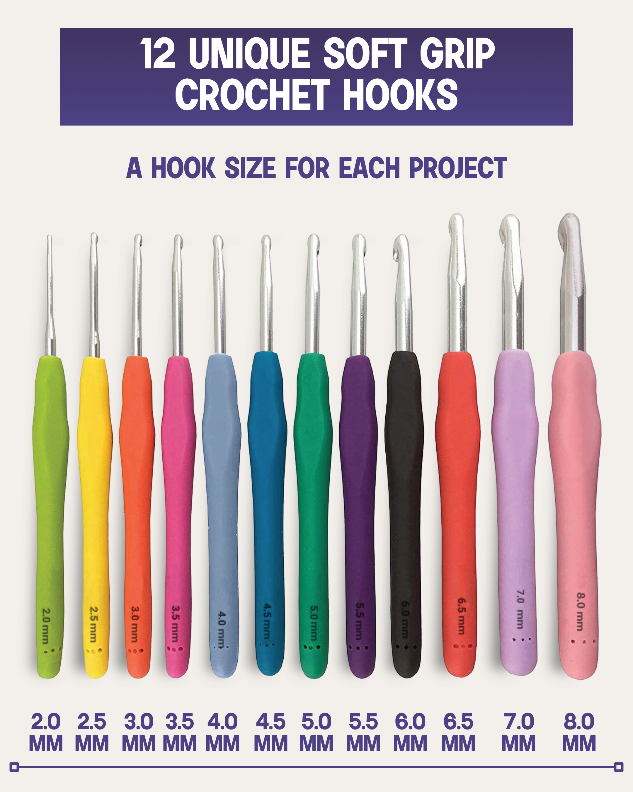 - Ergonomic crochet hooks are designed to fit beautifully in the hands which allows for longer working hours on your crochet projects. Prefect for taking on that big project you've always wanted to try!