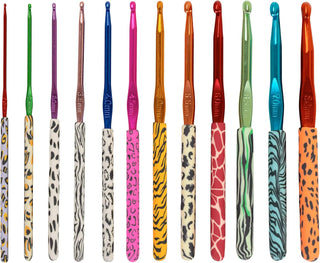 The Quilted Bear 12 Piece Ergonomic Crochet Hook Set - 2mm-8mm (Safari Print)