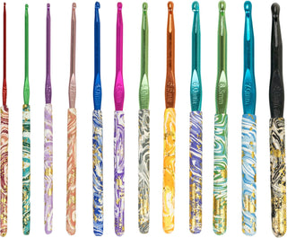 The Quilted Bear 12 Piece Ergonomic Crochet Hook Set - 2mm-8mm (Marble Print)
