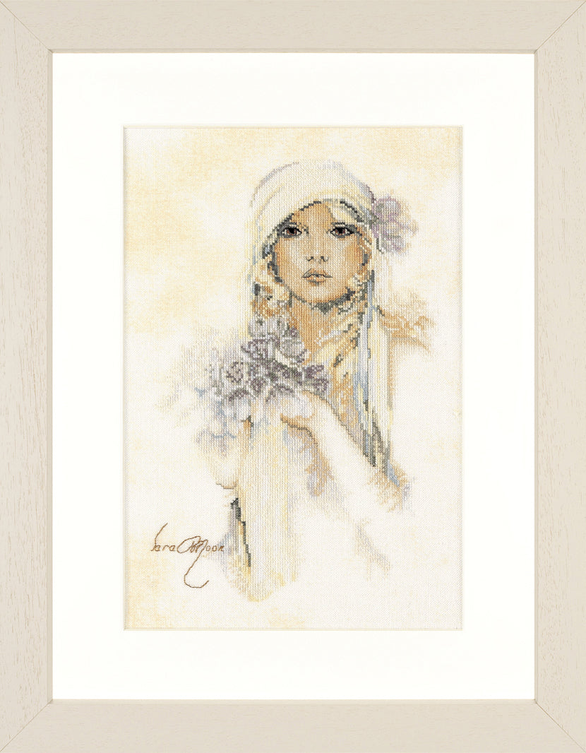 Lanarte Sara Moon: Lady with Lilac Flower Counted Cross Stitch Kit (Linen)