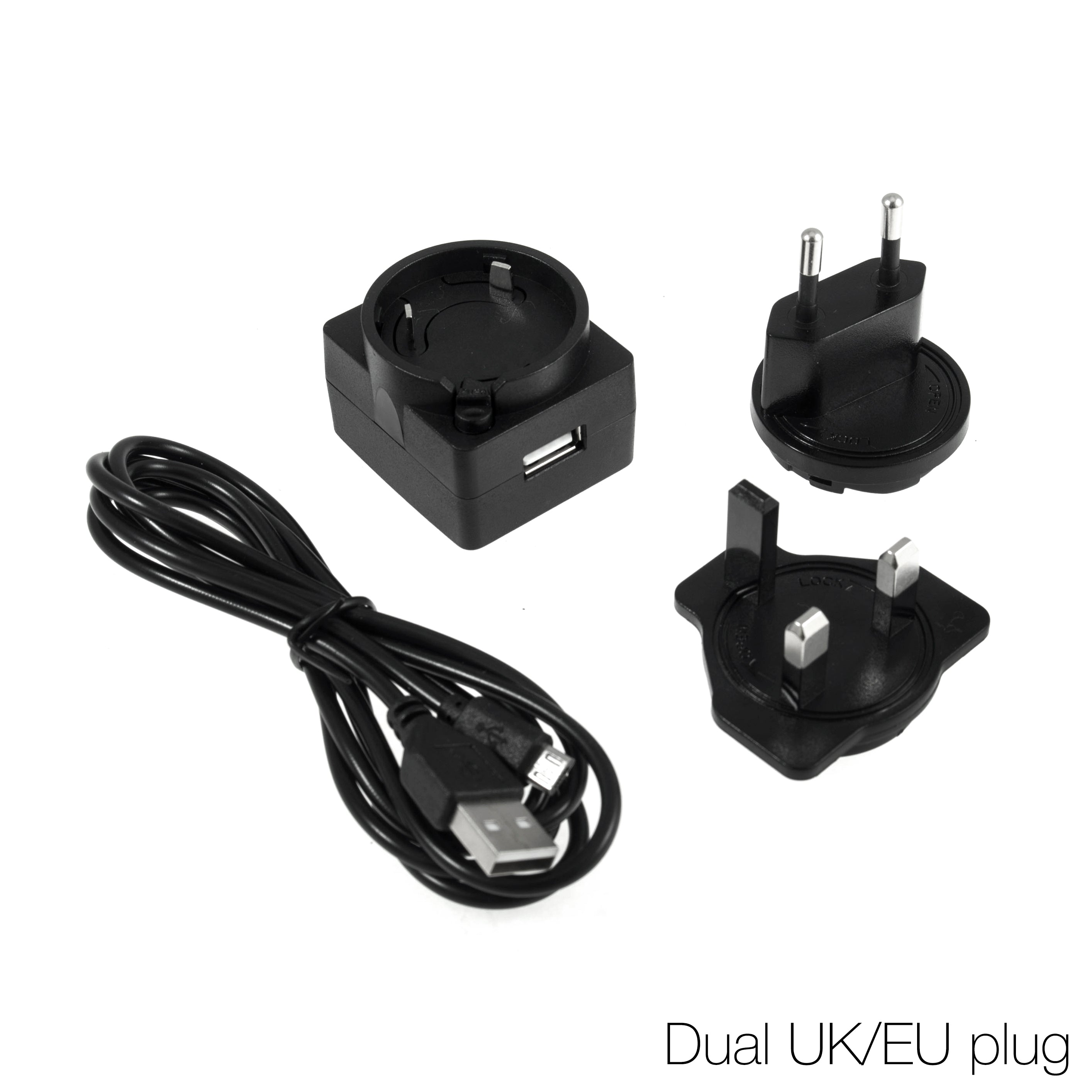 Power Options: USB or mains operated (2m cable included) with a dual UK/EU plug.
