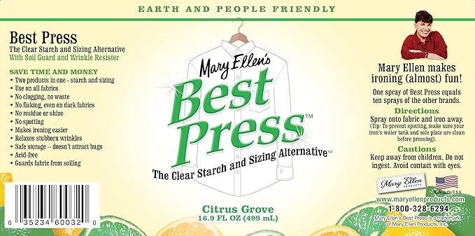 • Clear, crisp ironing spray that smooths out wrinkles to restore fabric to its pre-washed state.