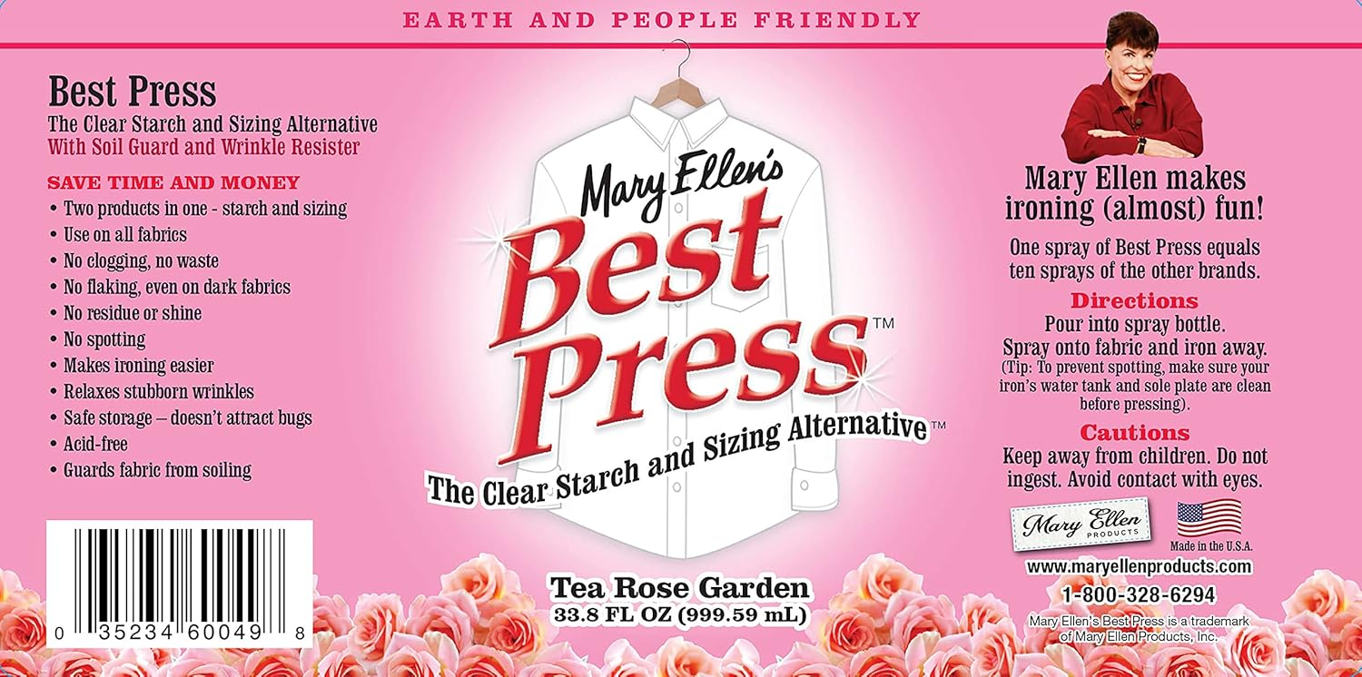 - Clear, crisp ironing spray that smooths out wrinkles to restore fabric to its pre-washed state.