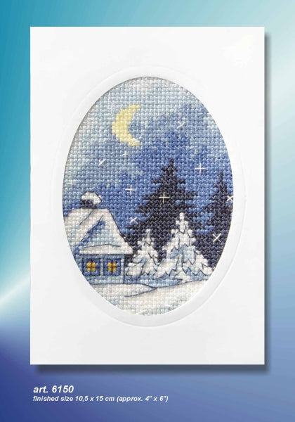- Christmas greetings card cross stitch kit. Design to be cross stitched onto printed Zweigart, 14 count aida in DMC mouliné stranded cotton. Kit also includes a blank card and envelope. Finished size: 10.5 x 15cm (4 x 6in).
