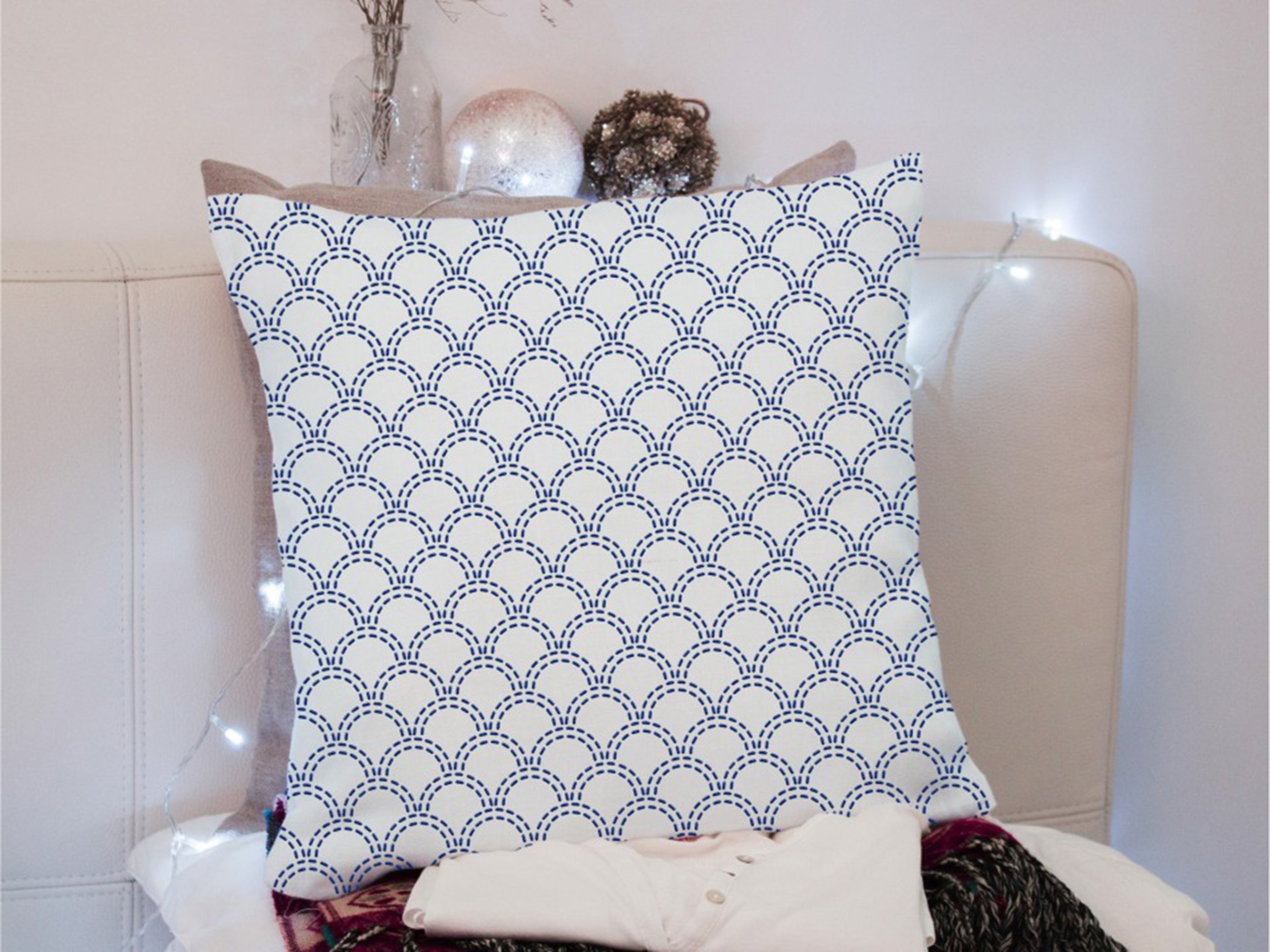 - Subvert the Sashiko norm by stitching navy thread into this white fabric.