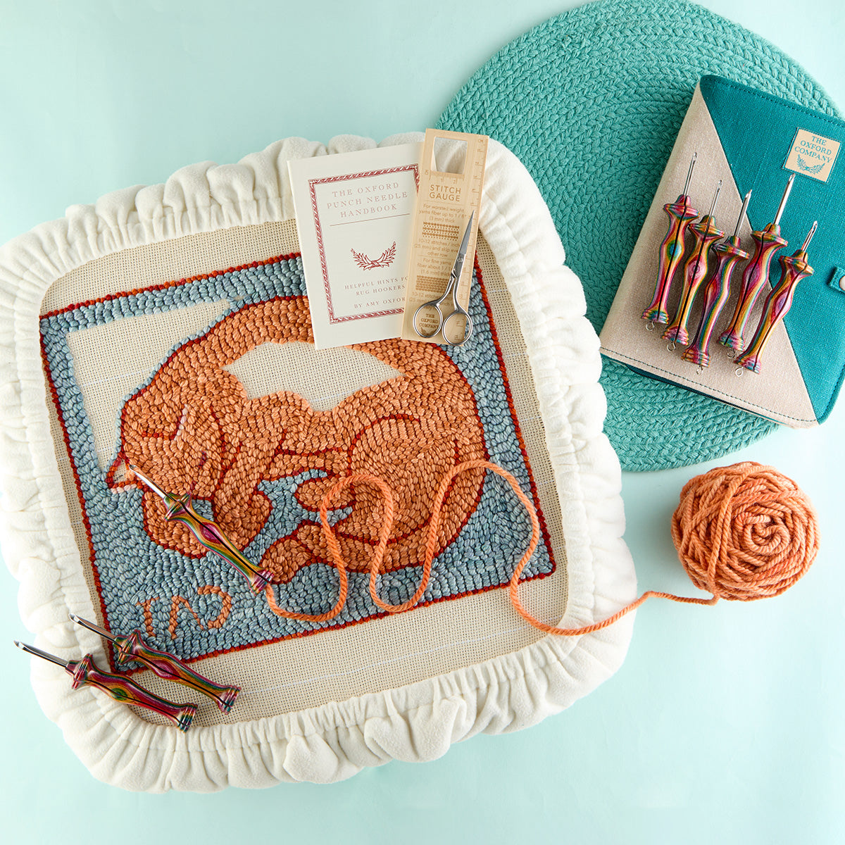 - Set includes: 5 Fine Point (for thinner, worsted weight yarn) Punch Needles in sizes: 8 (13mm loop), 9 (10mm loop), 10 (6mm loop), 13 (5mm loop) and 14 (3mm loop); 3 Regular Point (for bulky/rug yarn) Punch Needles in sizes: 8 (13mm loop), 9 (10mm loop), 10 (6mm loop); Wooden Stitch Guage; Scissors; Handbook