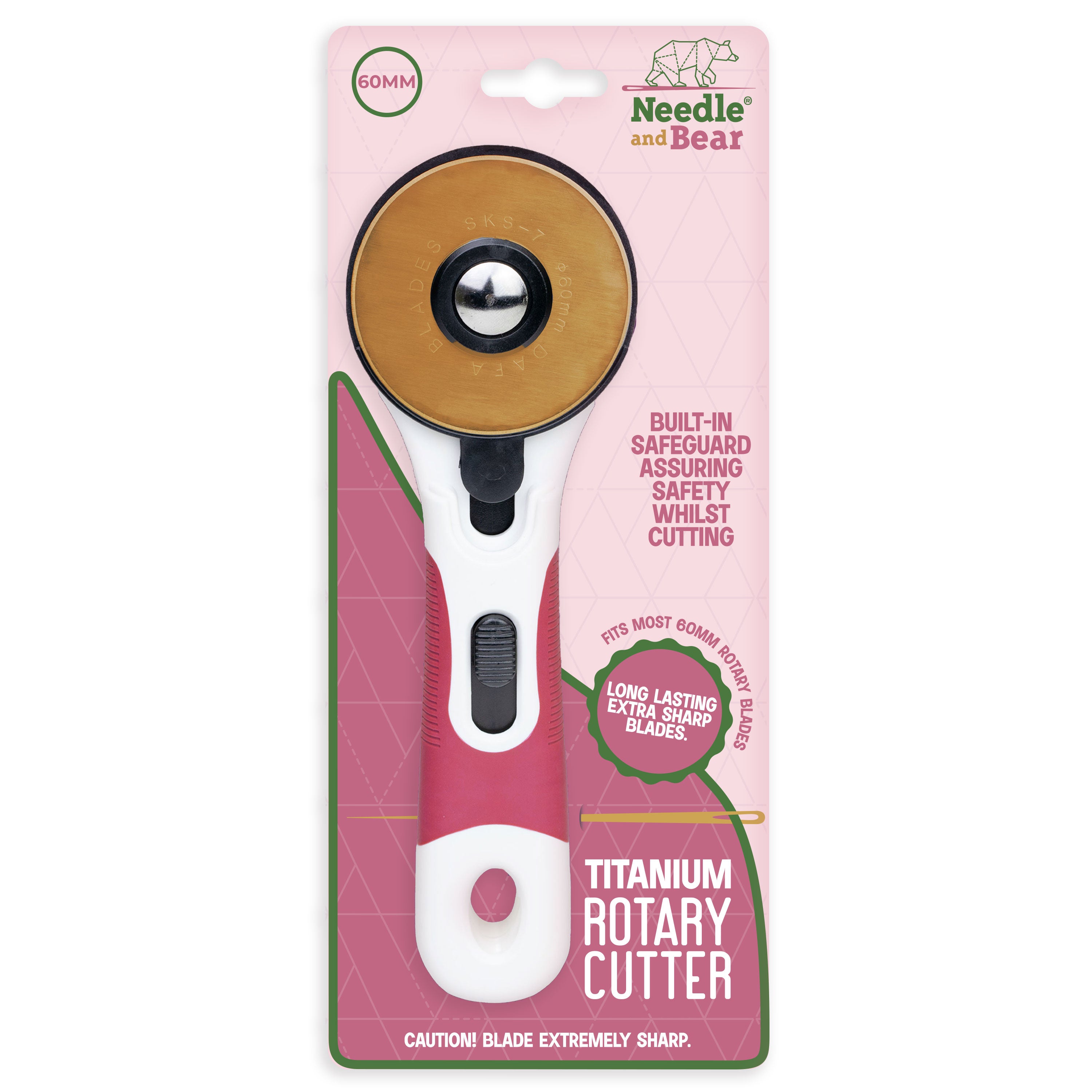 This bundle pairs the high-performance Needle and Bear 60mm Rotary Cutter with our Titanium Replacement Blade, creating the ultimate cutting setup for any crafter.