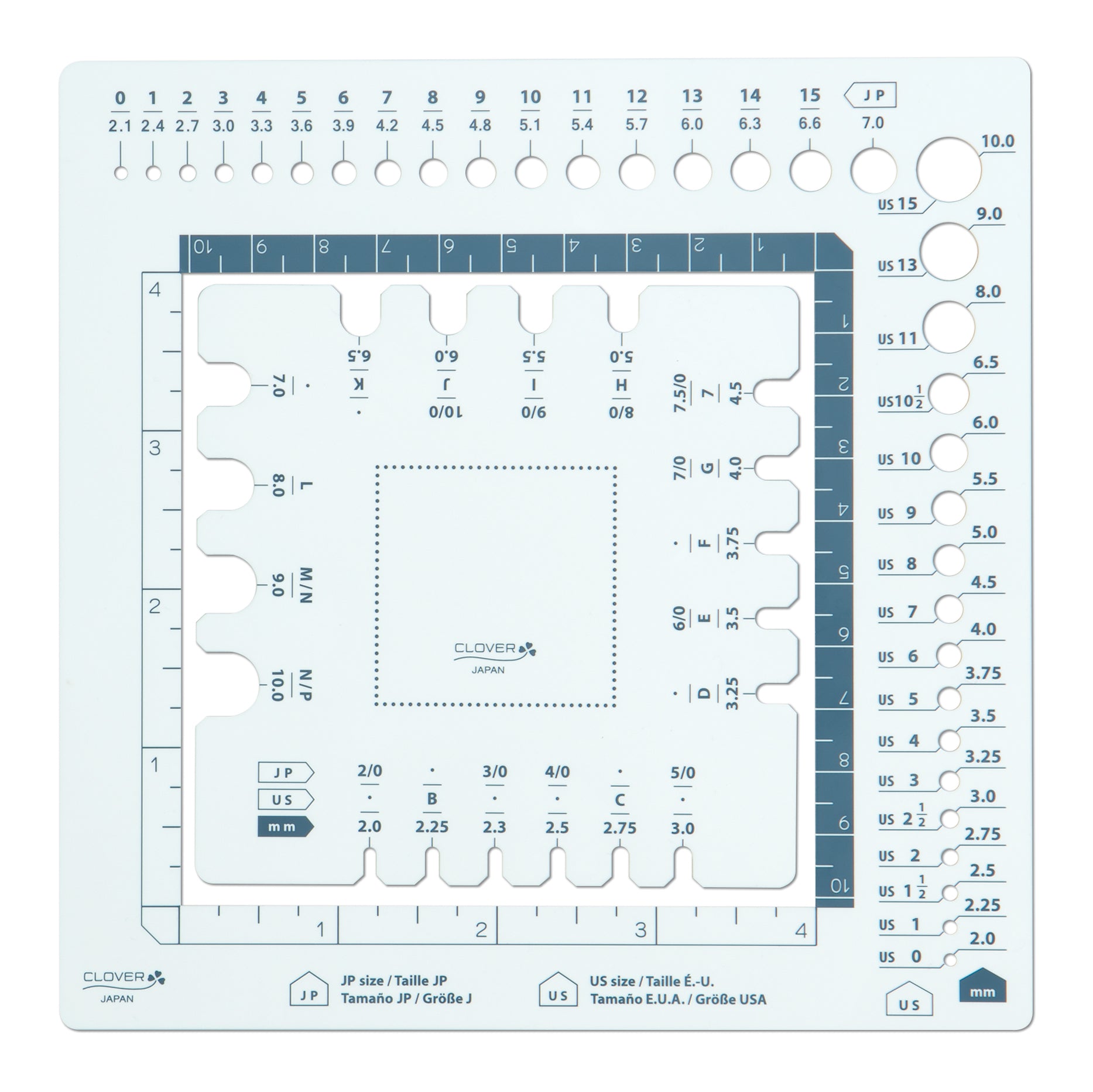 - Measure your crochet hook or knitting needle size in US, metric and Japanese standard sizes