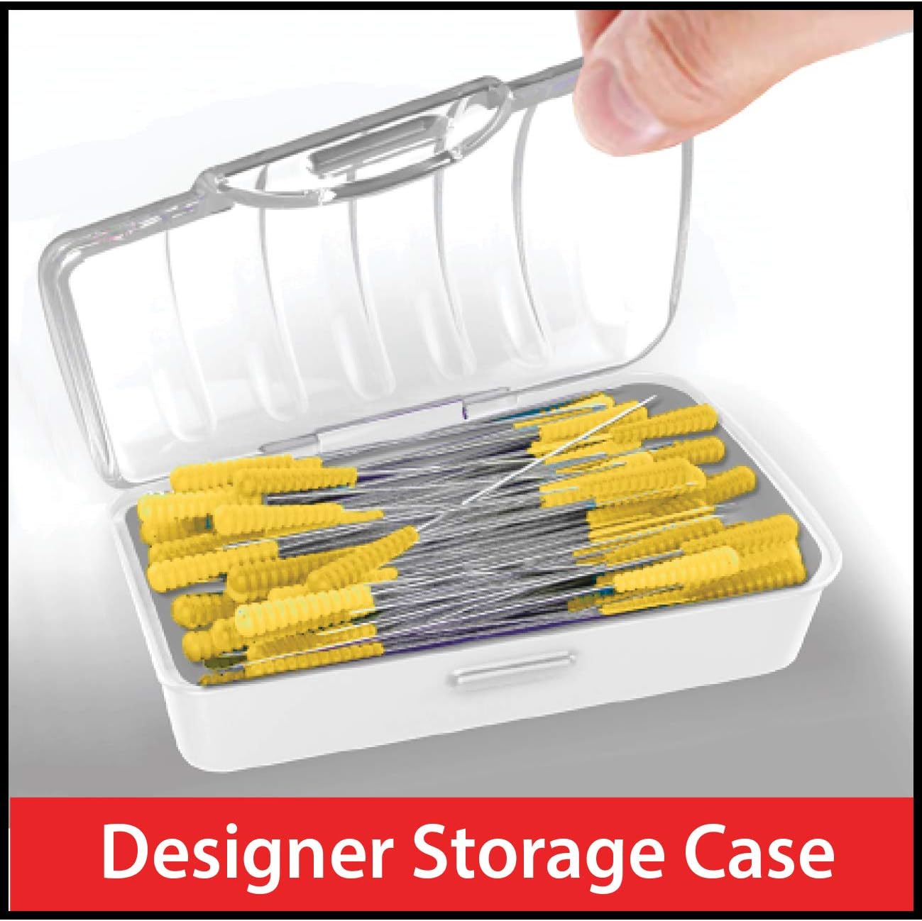Comfort Grip, Heat Resistant, 100pc. Taylor Seville Originals Notions make your sewing life easier. The Comfort Grip Magic Applique Pins, Fine are 1in x 0.5mm. They have a comfort grip head that makes picking up and maintaining a grip on the pin, easy. The Comfort Grip Magic Pins are also heat resistant, so if you iron over them, they will not be ruined. The pins come in a designer storage case that closes, so you won’t lose any pins!