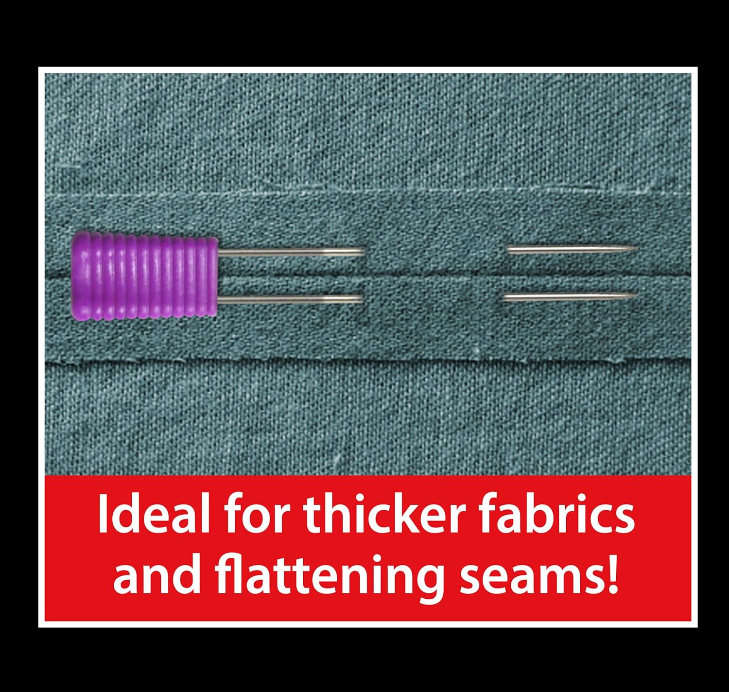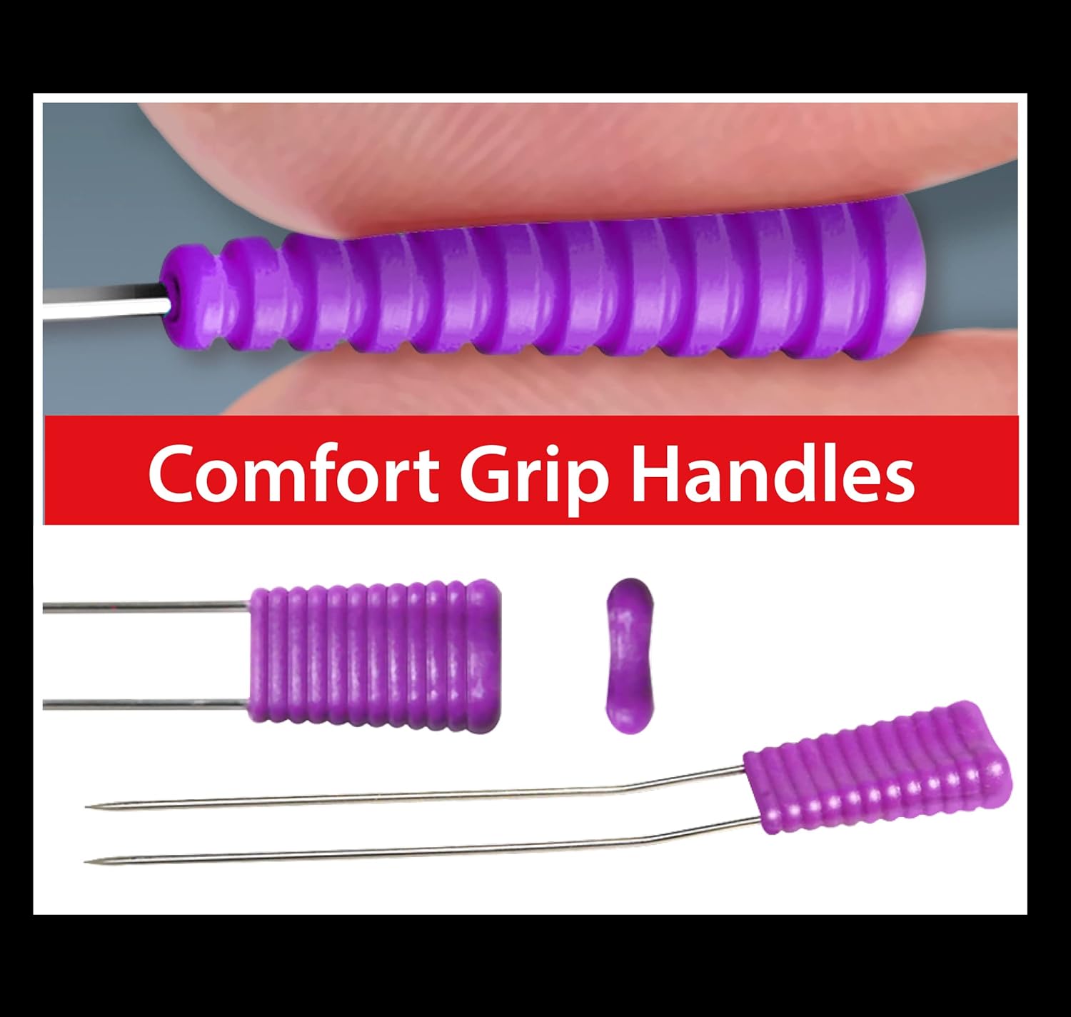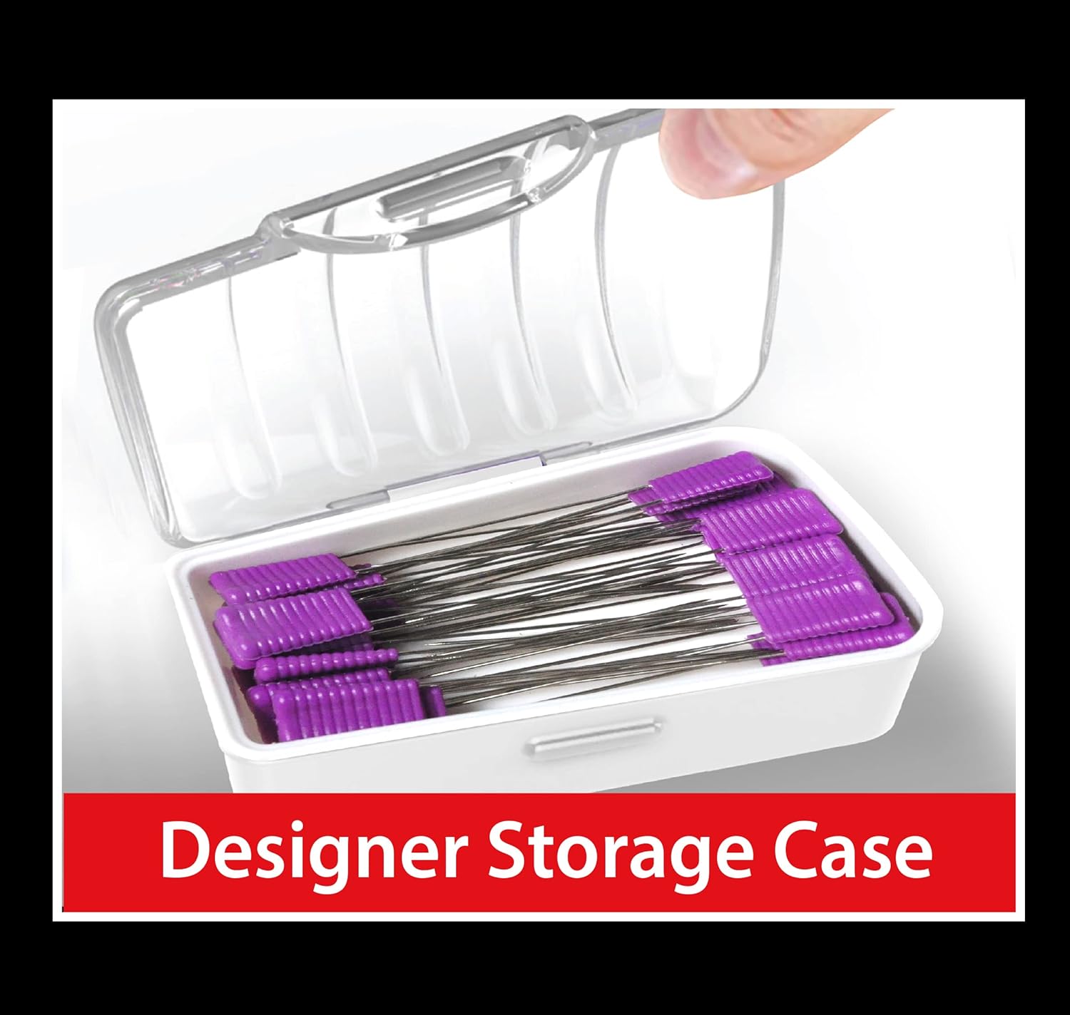 Magic Fork Pin Regular feature our Comfort Grip™ handles and two tines to let you pin your piece on both sides of the seams while holding the two pieces together for producing perfectly-matched seams. Includes attractive designer storage case.