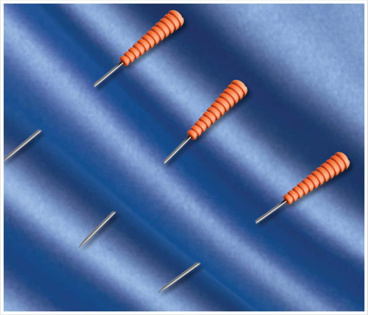 Comfort Grip, Heat Resistant, 100pc. Taylor Seville Originals Notions make your sewing life easier. The Comfort Grip Magic Pins Fine Silk Pins are 1-7/16in and .5mm. They have a comfort grip head that makes picking up and maintaining a grip on the pin, easy. The Comfort Grip Magic Pins are also heat resistant, so if you iron over them, they will not be ruined. The pins come in a designer storage case that closes, so you won’t lose any pins!