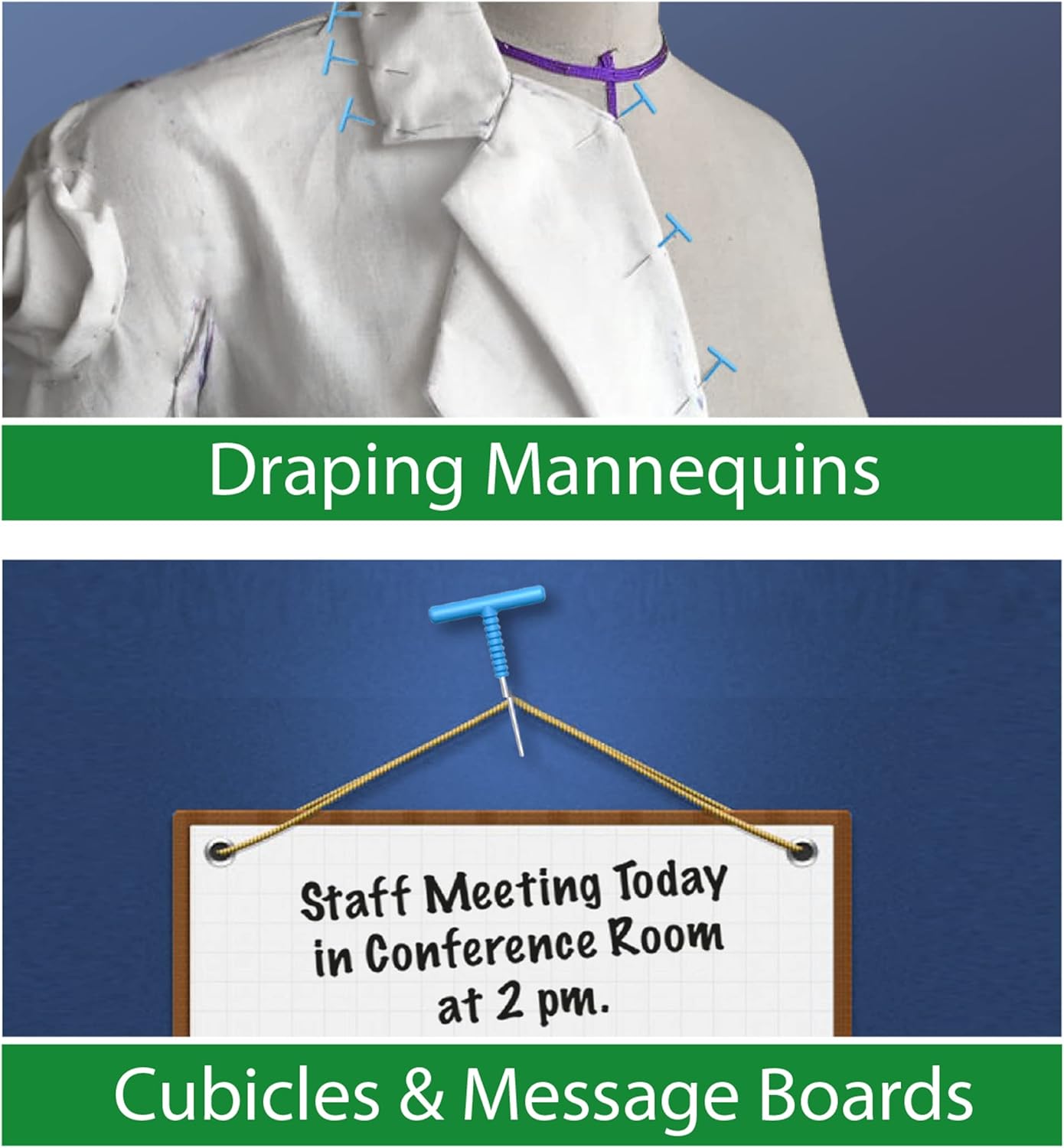Comfort Grip, Rust & Heat Resistant, 50pc. Taylor Seville Originals Notions make your sewing life easier. The Comfort Grip Magic T-Pins size 20 are 11/4” x 0.7mm. They have a comfort grip that makes picking up and maintaining a grip on the pin, easy. These are strong and sharp pins which are ideal for draping Mannequins, Wig Styling, Models and Hobby Crafting and hanging notes and pictures in cubicles and on message boards. The pins come in a designer storage case that closes, so you won’t lose any pins!