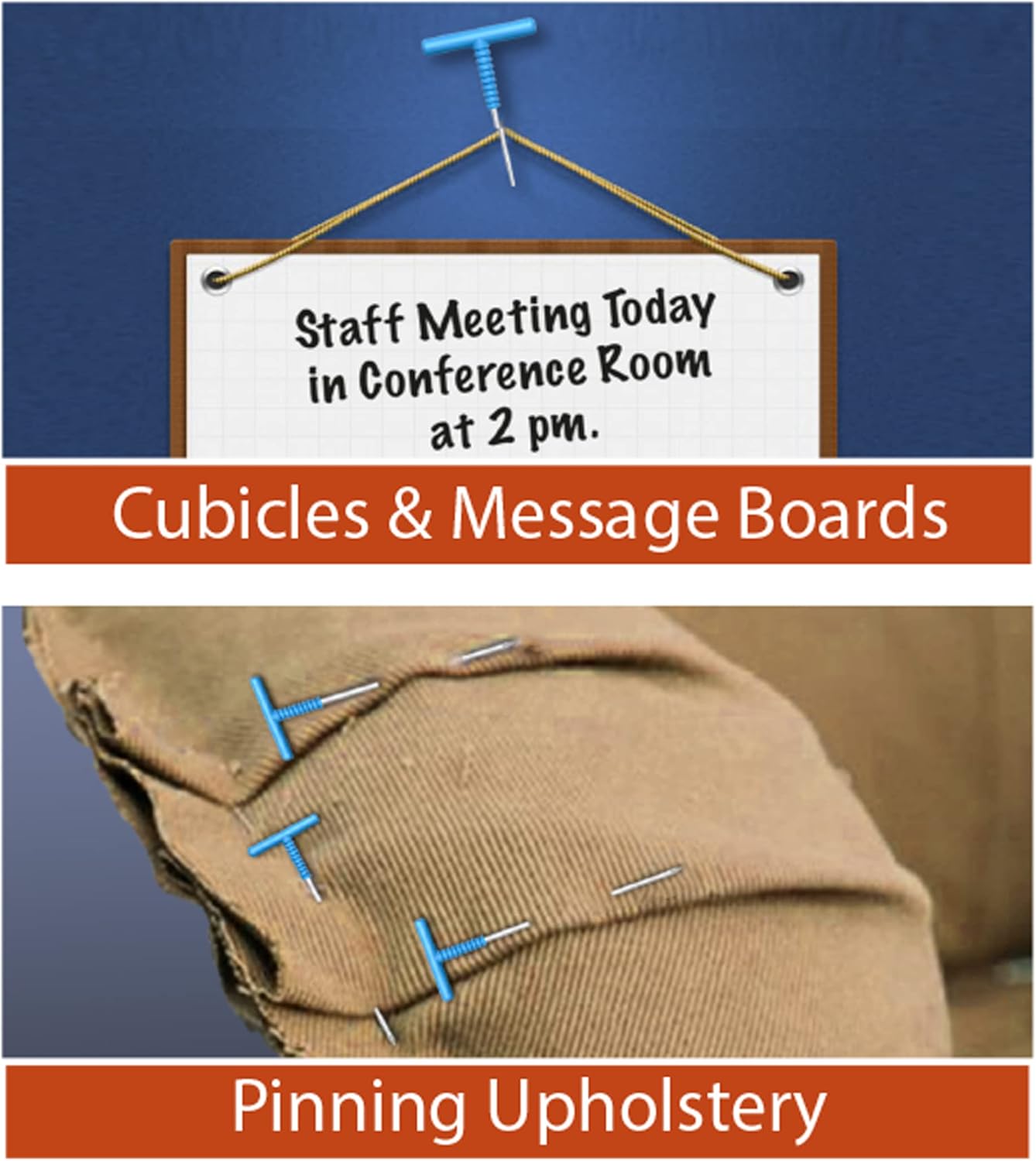 Comfort Grip, Rust & Heat Resistant, 50pc. Taylor Seville Originals Notions make your sewing life easier. The Comfort Grip Magic T-Pins size 28 are 13/4” x 1.0mm. They have a comfort grip that makes picking up and maintaining a grip on the pin, easy. These are strong and sharp pins which are ideal for draping Mannequins, Blocking Knitting, Pinning Upholstery and hanging notes and pictures in cubicles and on message boards. The pins come in a designer storage case that closes, so you won’t lose any pins!
