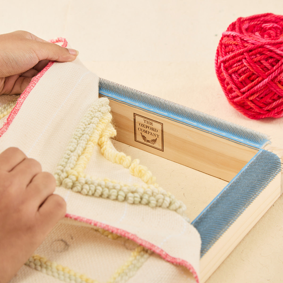 - This frame is suitable for use with 3-ply or other heavy-duty wool rug yarn.