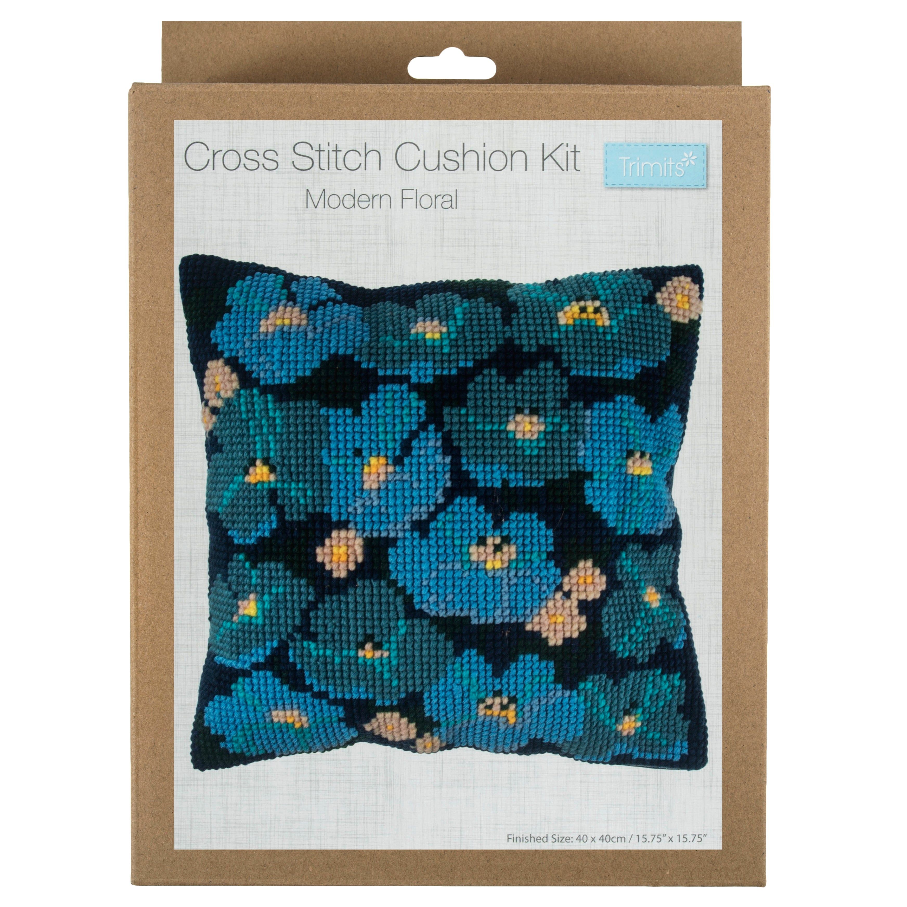- Kit includes: pre-printed, large hole (18 holes/10cm), polycotton canvas; polyester yarns; needle; cotton cushion back with zip; front sheet picture and instructions in 3 languages (EN, FR, GER)