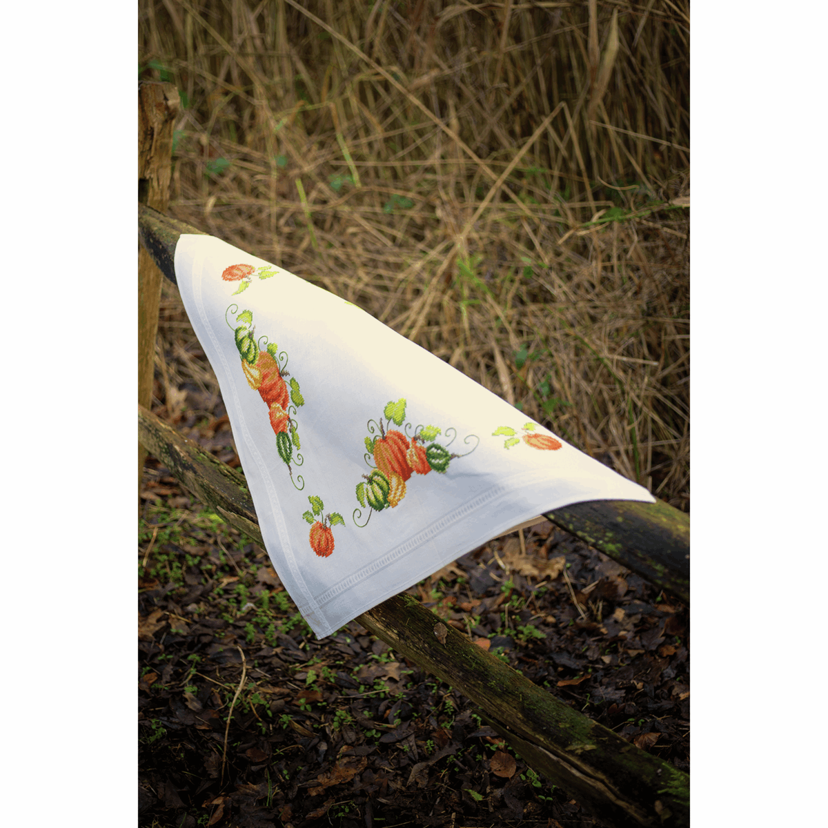 - Design to be stitched onto pre-finished, printed, ecru, cotton embroidery fabric with hemmed inwoven border, with cotton pre-sorted threads. Kit also includes instructions in 8 languages, large-square design, needle, front sheet picture. The printed design will wash out. Approximate finished size: 80 x 80cm/32 x 32in. Age category: from 9 years. Stitches used: cross stitch, stem stitch.
