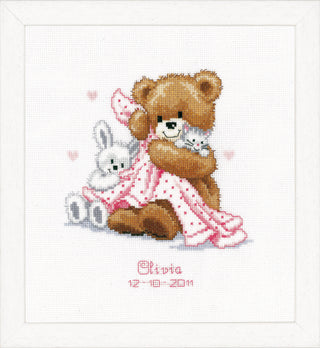 Vervaco Teddy & Blanket Birth Record Counted Cross Stitch Kit