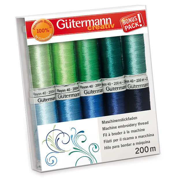 Gutermann Rayon 40 Sea Colours Machine Embroidery Thread Set 10 x 200m