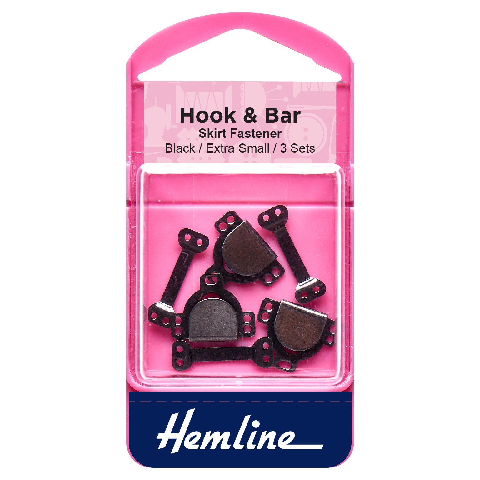 Hemline Extra Small Black Hook and Bar 3 Pack